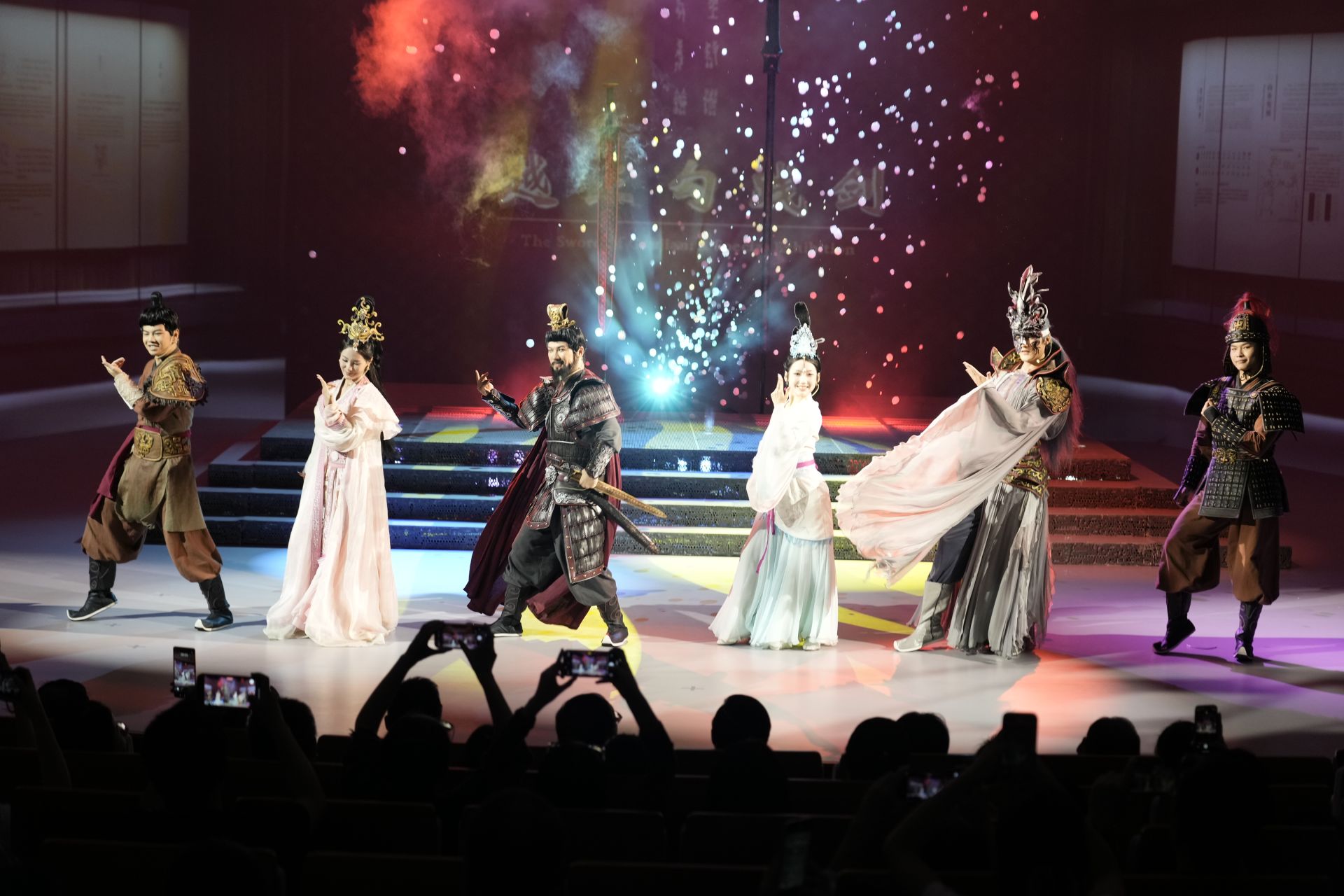 《遇見?勾踐劍》以楚越結(jié)盟為主線,通過勾踐歸國、鑄劍復(fù)國、西施入?yún)?、越楚?lián)姻、滅吳稱霸等篇章,講述了勾踐劍為何鑄造、又如何流入楚國的傳奇歷程,立足吳晉與楚越兩大聯(lián)盟爭霸春秋的歷史背景,生動再現(xiàn)了時代風(fēng)云。該劇實現(xiàn)了戲劇藝術(shù)與科技手段的有機(jī)融合,以創(chuàng)新的全息投影與真人互動形式,為觀眾奉上一場視聽盛宴。