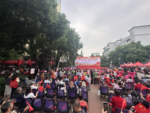 活動中,文藝表演與互動環(huán)節(jié)穿插進(jìn)行,帥鼓《歌唱祖國》、民樂《地道戰(zhàn)》、黃梅戲《再唱山歌給黨聽》輪番上演。當(dāng)54平方米的巨幅國旗緩緩展開,居民們揮舞小國旗齊唱贊歌,手中的紙飛機(jī)帶著美好祝愿飛向夜空,電子煙花綻放的瞬間,現(xiàn)場氣氛達(dá)到高潮。此外,三輪抽獎、“最受歡迎菜品”評選等環(huán)節(jié),更讓活動充滿驚喜與趣味。