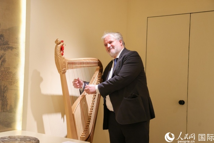 嘉賓體驗(yàn)中國樂器。人民網(wǎng)記者 任皓宇攝
