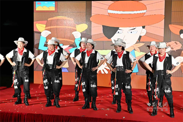 文藝匯演在歌舞快閃《我愛你中國》的激昂旋律中拉開序幕,瞬間將現(xiàn)場觀眾帶入喜慶熱烈的節(jié)日氛圍。情景劇《起義》、川劇絕技《變臉》、手指操《太陽出來暖洋洋》、舞蹈《祖國你好》《歡聚一堂》《擼起袖子加油干》、時裝秀《牛仔很忙》文藝節(jié)目輪番上演,精彩紛呈。臺上的表演者們吹拉彈唱,各顯身手,現(xiàn)場掌聲、歡呼聲此起彼伏,將“愛國心”與“鄰里情”的主題展現(xiàn)得淋漓盡致。