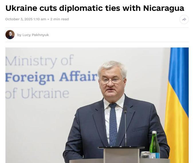 中新網(wǎng)10月3日電 據(jù)烏克蘭《基輔獨立報》報道,烏克蘭外交部當(dāng)?shù)貢r間10月2日發(fā)布聲明稱,因尼加拉瓜承認(rèn)俄羅斯控制的部分地區(qū)為俄羅斯領(lǐng)土,烏克蘭方面決定斷絕與尼加拉瓜的外交關(guān)系。
