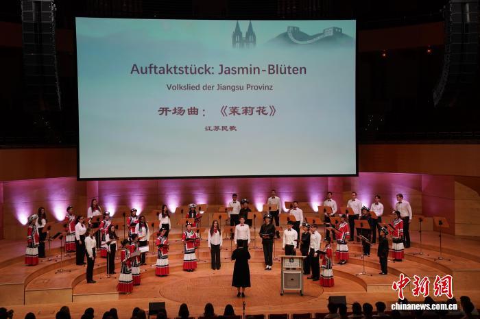 當(dāng)?shù)貢r(shí)間10月4日,中德青少年交流音樂會暨“唱歌學(xué)中文”夏令營匯報(bào)演出在德國埃森舉行。圖為中德青少年合唱開場曲《茉莉花》。 中新社記者 馬秀秀 攝