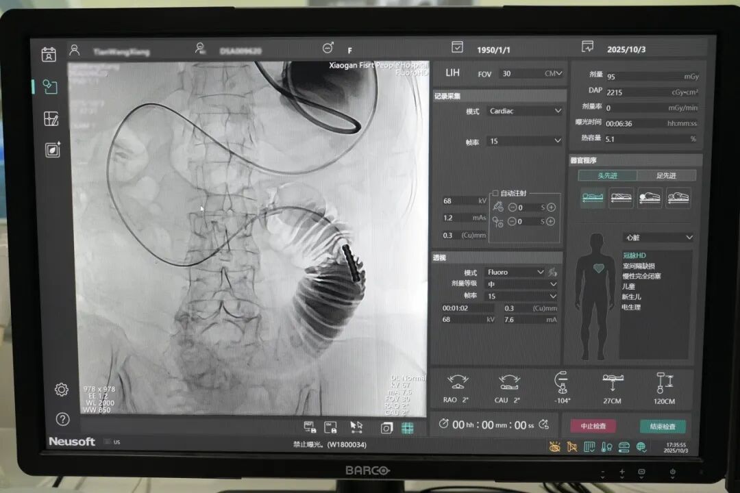 面對如此棘手的病情,醫(yī)院迅速組織多學科會診。介入血管科主任黃遷祥及其團隊在全面評估患者情況后,決定采用目前國內(nèi)先進的DSA引導下腸梗阻導管置入技術(shù)為患者進行治療。