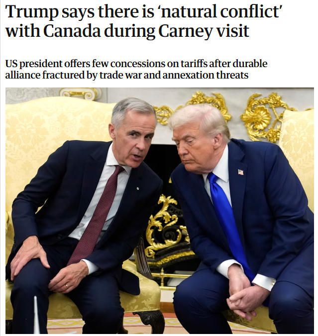 中新網(wǎng)10月8日電 據(jù)英國《衛(wèi)報》報道,當(dāng)?shù)貢r間7日,美國總統(tǒng)特朗普在白宮與到訪的加拿大總理卡尼會談,特朗普表示美國與加拿大之間存在“天然沖突”。