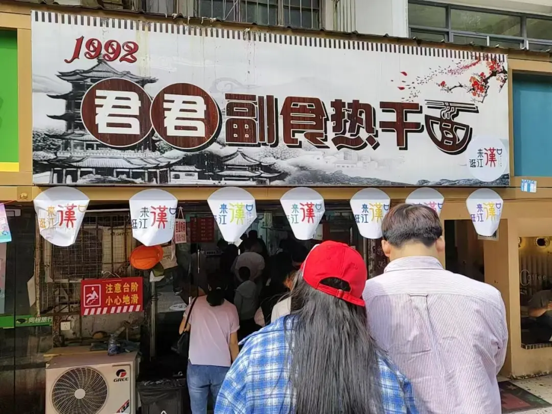優(yōu)化營商環(huán)境,關(guān)鍵要讓小店輕裝上陣。作為江漢區(qū)碳水文化的重要符號(hào),君君副食曾受限于門面窄小,客流量大時(shí)顧客只能站著吃、蹲著拌,體驗(yàn)不佳等各類問題。街道了解情況后主動(dòng)靠前,聯(lián)動(dòng)相關(guān)部門爭取支持,既保留了老店小而美的煙火氣,又通過合理規(guī)劃提升了經(jīng)營舒適度。如今,游客順著“漢口必吃榜”“來漢口 逛江漢”的推薦牌來打卡,周邊上班的白領(lǐng)順路打包,小店日均客流更穩(wěn)定,口碑也越傳越遠(yuǎn)。