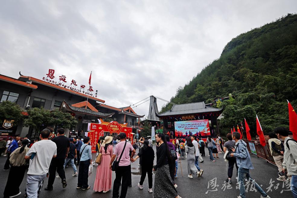 此外,“非遺鬧峽谷”,雙節(jié)間景區(qū)各處其豐富多彩的非遺文化活動(dòng)為這趟自然之旅增添不少韻味。湖北省民族歌舞團(tuán)的駐場(chǎng)演出、《地心之戀》實(shí)景劇、《鹽道古風(fēng)》原生生態(tài)表演等,讓游客在領(lǐng)略自然奇觀的同時(shí),也能深度體驗(yàn)深厚的土家苗族文化與千年巴鹽古道歷史。山水與人文在此完美交融,締造出獨(dú)一無(wú)二的旅行記憶。
