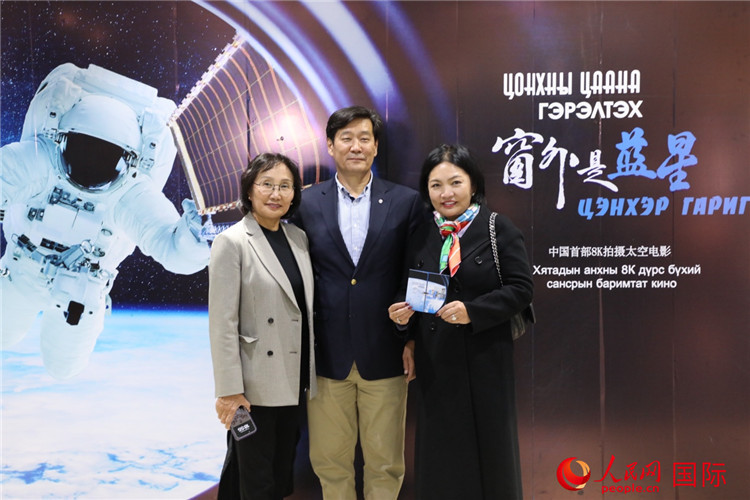 沈敏娟在致辭中說,《窗外是藍(lán)星》有很多項(xiàng)“第一”。它是中國第一部8K太空實(shí)拍電影,第一次由航天員使用國產(chǎn)攝影機(jī)拍攝,記錄了中國人第一次在中國空間站駐留6個(gè)月的非凡旅程。今天還是這部影片第一次在蒙古放映,我也要特別感謝CGTN烏蘭巴托制作室專門為此制做了蒙文字幕。