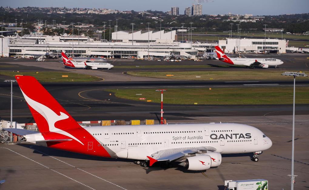 2020年3月18日,多架澳洲航空客機(jī)停泊在澳大利亞悉尼機(jī)場。新華社記者白雪飛攝