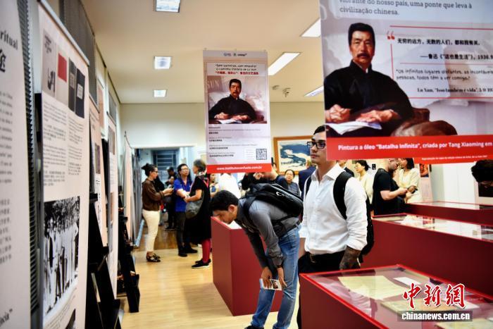 當(dāng)?shù)貢r(shí)間10月17日晚,由北京魯迅博物館、北京新文化運(yùn)動(dòng)紀(jì)念館和巴西圣保羅州立大學(xué)孔子學(xué)院聯(lián)袂主辦的“魯迅的文藝道路——不隔膜,相關(guān)心”展在巴西圣保羅州立大學(xué)孔子學(xué)院?jiǎn)⒛?,主辦方代表為展覽剪彩。中新社記者 林春茵 攝