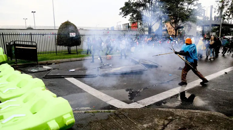 17日,美國(guó)駐哥倫比亞大使館外發(fā)生抗議游行,譴責(zé)美國(guó)支持以色列??棺h最終演變成一群蒙面人使用爆炸裝置、燃燒彈和弓箭等發(fā)動(dòng)襲擊。美國(guó)駐哥倫比亞大使館17日宣布暫停辦公一天。(總臺(tái)記者 鄧雪梅)