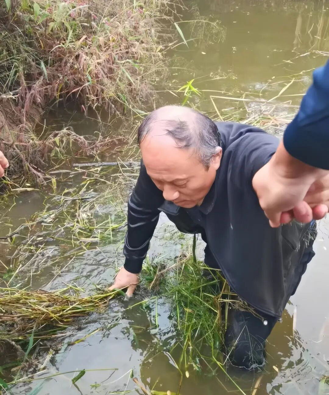事發(fā)時(shí),新鋪鎮(zhèn)徐山村的退伍軍人文政正在池塘對(duì)岸釣魚。聽到急促的“救命”呼喊聲后,他立刻扔掉手中的魚竿,循聲飛奔至岸邊。只見冰冷刺骨的池水中,一位老人正在拼命掙扎,情況萬分危急。文政來不及多想,為了盡快趕到老人身邊,他毅然選擇從池塘里的蘆葦蕩中穿梭過去,一邊奮力開路,一邊大聲呼喊詢問老人的位置。