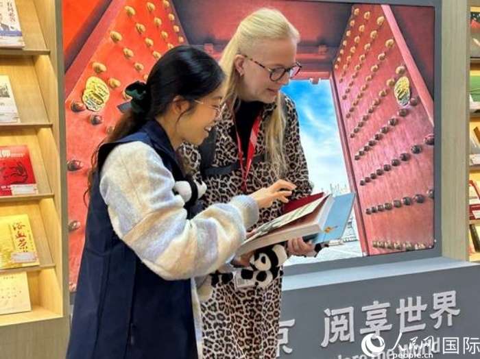 德國出版從業(yè)者代吉拉在北京圖書展區(qū)。人民網(wǎng)記者 徐馨攝