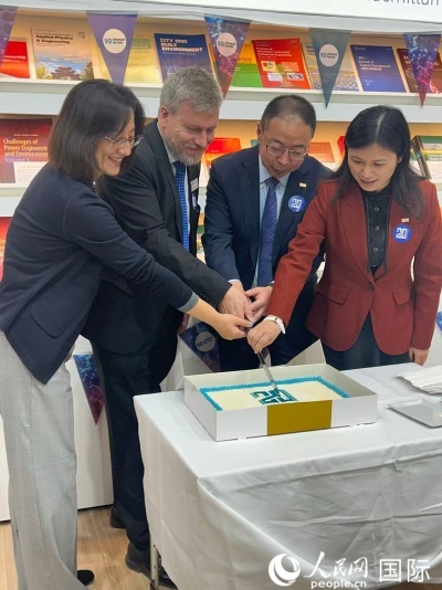 浙江大學出版社與施普林格·自然在法蘭克福書展舉行合作二十周年慶典。人民網(wǎng)記者 徐馨攝