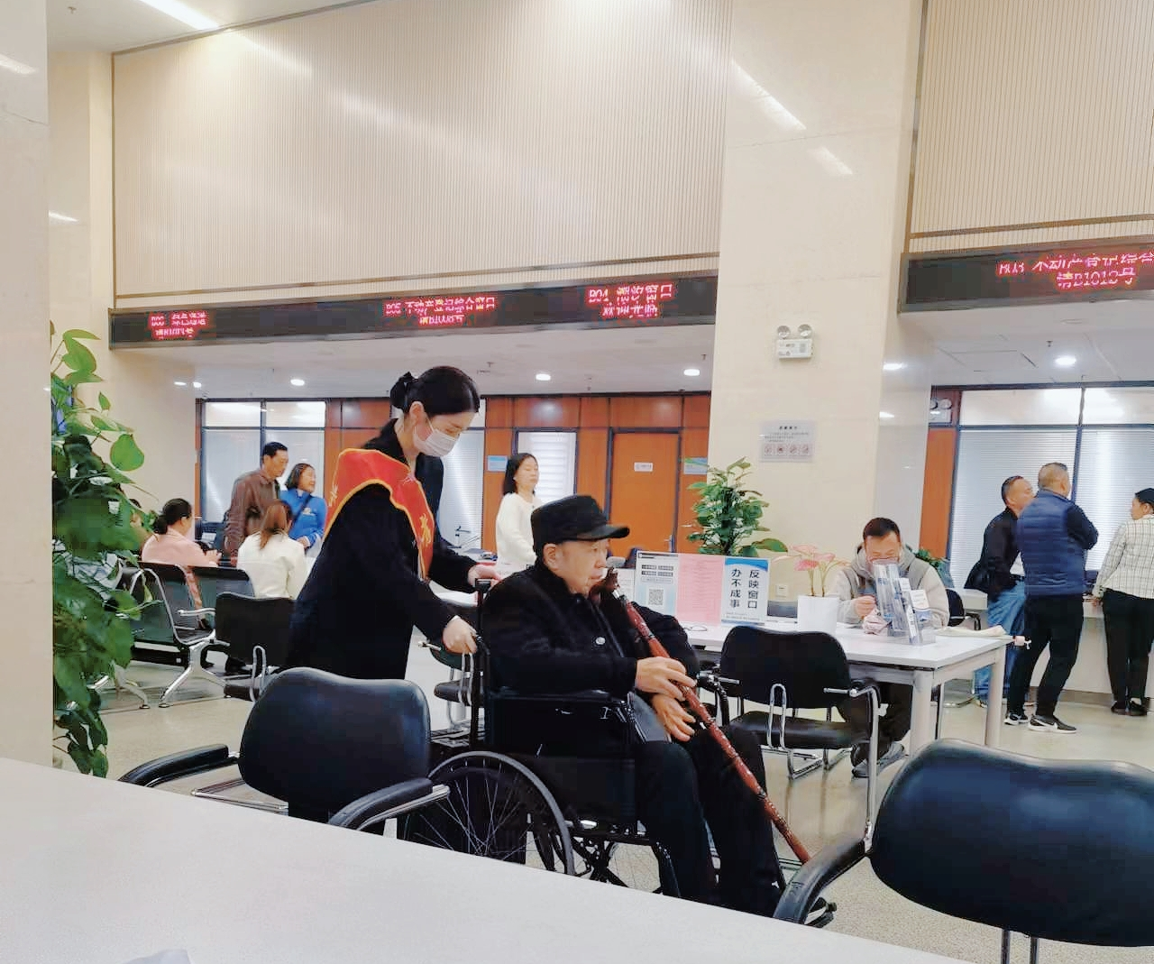 暖心服務(wù),細(xì)節(jié)處的“孝心”。除了業(yè)務(wù)辦理,“孝著辦”團(tuán)隊(duì)還注重從細(xì)節(jié)處體現(xiàn)對(duì)老年人的關(guān)懷。在政務(wù)服務(wù)中心大廳,設(shè)置了老年人休息區(qū),配備老花鏡、急救藥品、輪椅等便民設(shè)施;針對(duì)老年人聽(tīng)力下降的問(wèn)題,團(tuán)隊(duì)為工作人員配備了便攜式擴(kuò)音器;在“敬老月”期間,攜手公安、郵政等部門(mén)開(kāi)展了“警郵聯(lián)動(dòng)”活動(dòng),60歲以上老年人申辦出入境證件可享受EMS特快專(zhuān)遞免費(fèi)寄遞服務(wù),真正實(shí)現(xiàn)“辦事零跑腿、服務(wù)送上門(mén)”。