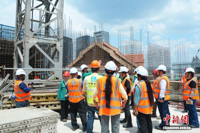 與會(huì)各國(guó)代表參觀中建柏威年廣場(chǎng)工地。主辦方供圖