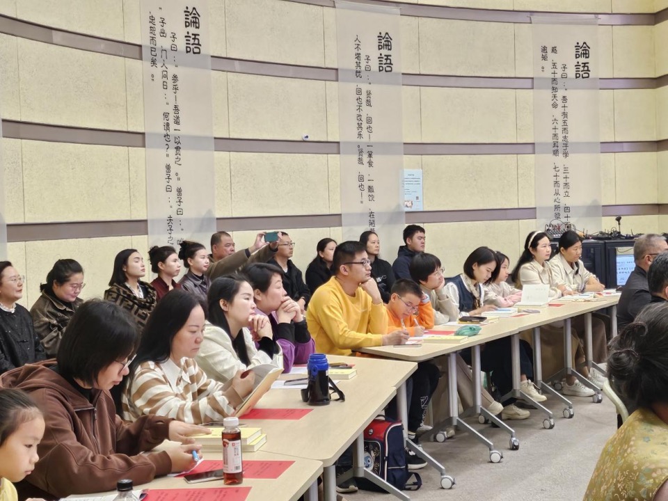 活動(dòng)現(xiàn)場(chǎng),來(lái)自新疆、河北等地的傳統(tǒng)文化愛(ài)好者與楚天數(shù)字書(shū)院研學(xué)班師生踴躍提問(wèn),與嘉賓展開(kāi)熱烈互動(dòng)?;顒?dòng)尾聲,全體參與者齊聲誦讀《論語(yǔ)》經(jīng)典章句,瑯瑯書(shū)聲回蕩廳內(nèi),讓千年智慧在當(dāng)下煥發(fā)新生。此外,“論語(yǔ)生活美學(xué)展區(qū)”與“智慧之泉”互動(dòng)墻等沉浸式體驗(yàn)環(huán)節(jié),也讓讀者在場(chǎng)景中感受經(jīng)典與日常的融合之美。
