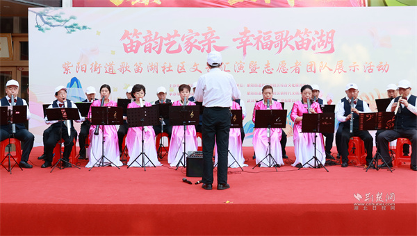 敬老月活動(dòng)的重頭戲——“笛韻藝家親,幸福歌笛湖”文藝匯演,在社區(qū)居民的期待中精彩上演。激昂的開(kāi)場(chǎng)音樂(lè)鼓瞬間點(diǎn)燃了現(xiàn)場(chǎng)氣氛;飽含深情的集體詩(shī)朗誦《偉大的祖國(guó)》抒發(fā)了對(duì)祖國(guó)的熱愛(ài)與祝福;口琴軍歌三連奏用熟悉的旋律勾起了現(xiàn)場(chǎng)觀眾的共同記憶;運(yùn)動(dòng)模特走秀展現(xiàn)出了獨(dú)特的銀齡魅力;郭書文團(tuán)隊(duì)的電吹管表演用悠揚(yáng)的旋律將匯演氣氛推向高潮。整場(chǎng)文藝匯演內(nèi)容豐富、形式多樣,不僅為社區(qū)老年人提供了一個(gè)展示自我的平臺(tái),更營(yíng)造了歡樂(lè)祥和的節(jié)日氛圍。