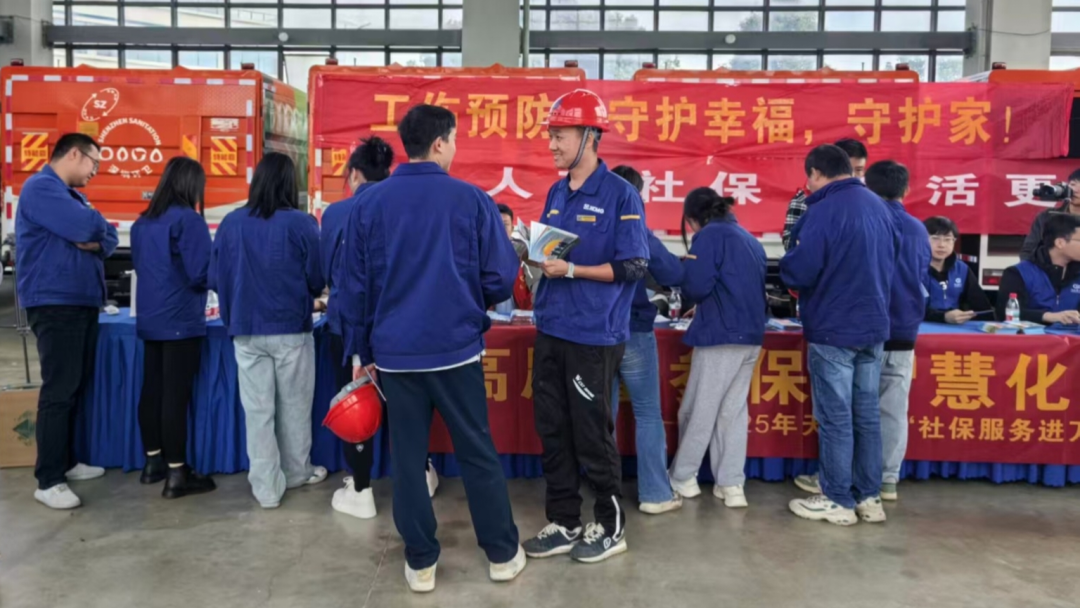 天門市走進企業(yè),向徐工湖北環(huán)??萍脊煞萦邢薰締T工送上貼心社保服務。