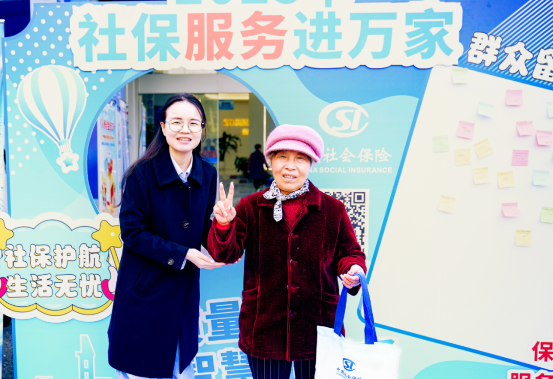 孝感市“社保服務進萬家”活動啟動儀式現(xiàn)場,年輕人在打卡點留下幸福笑臉。