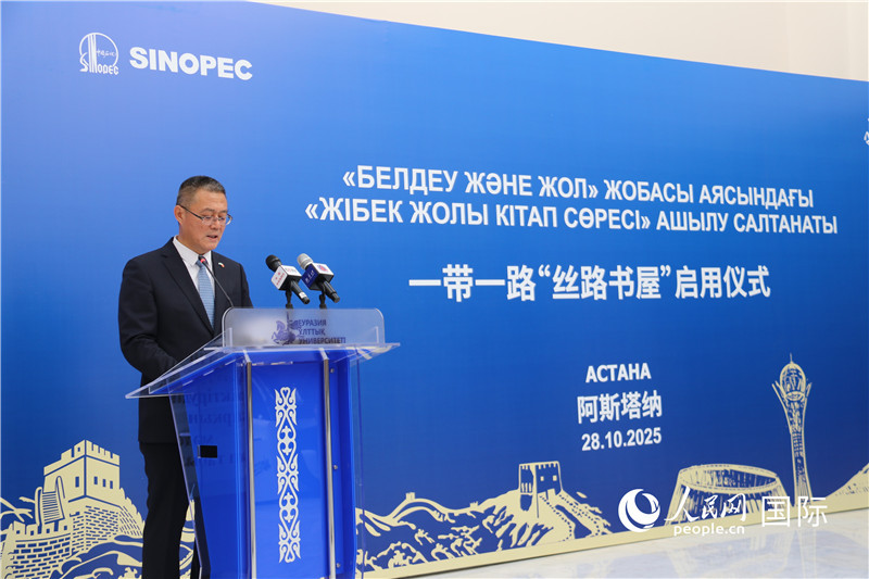 人民網(wǎng)阿斯塔納10月28日電 (記者李強)10月28日,由中國石油化工集團與哈薩克斯坦歐亞大學共同主辦的“絲路書屋”啟用儀式于哈薩克斯坦歐亞大學舉行。中國駐哈薩克斯坦使館公使銜參贊蘇予、歐亞大學校長埃爾蘭·西德科夫、中石化駐哈機構(gòu)總代表曾凡禮出席儀式并致辭。