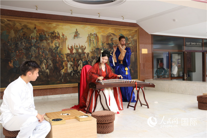 由中國石化向“絲路書屋”贈與的500余冊圖書,涵蓋了中國經(jīng)濟、社會、歷史、文化等,歐亞大學校長及在校師生現(xiàn)場翻閱中國圖書并體驗中國文化。