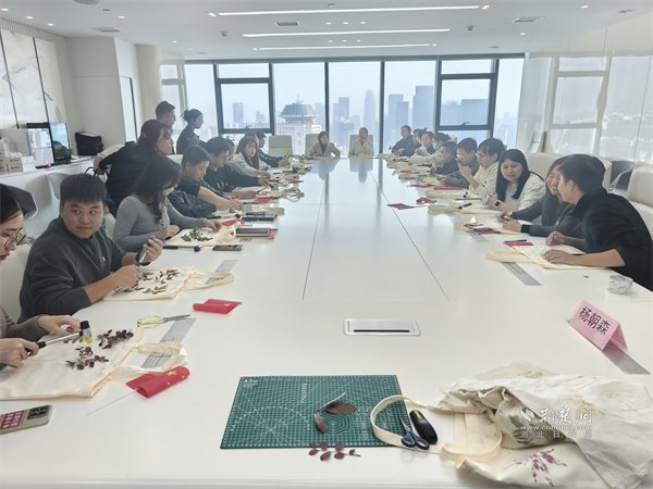 宣講結(jié)束后,現(xiàn)場還組織了“植物拓印”非遺體驗環(huán)節(jié)。在武漢啟晨社會組織的指導(dǎo)下,黨員們以純天然植物為材料,制作了出了各具特色的環(huán)保袋。大家紛紛表示,在動手創(chuàng)造美的過程中,切身感受到了綠色低碳生活的魅力,增強(qiáng)了踐行環(huán)保理念的自覺。