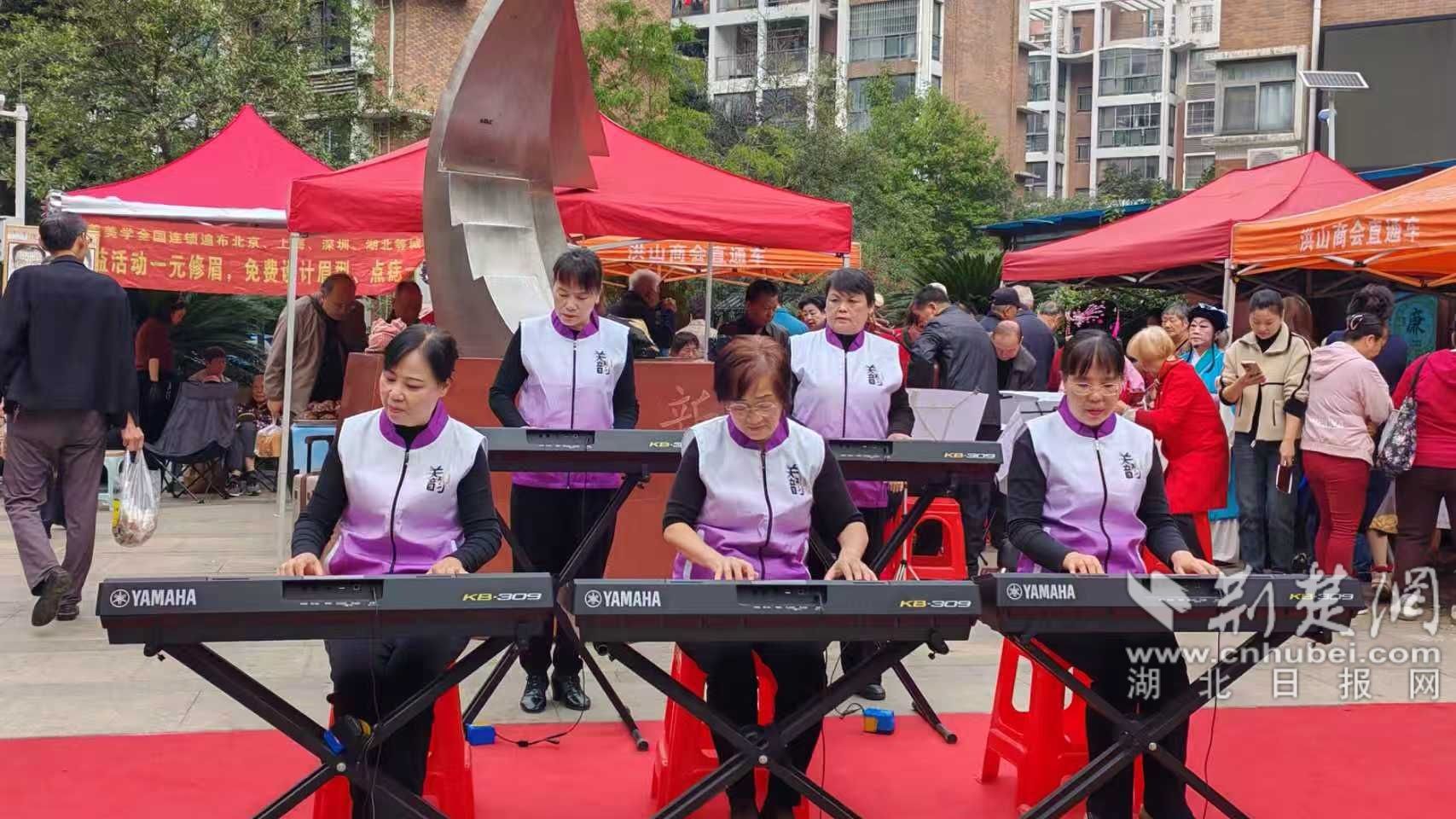 隨后,文藝匯演精彩啟幕。社區(qū)黨員、文藝愛好者與居家養(yǎng)老服務(wù)中心志愿者聯(lián)袂獻(xiàn)藝,帶來了一場精彩紛呈的視聽盛宴:昂揚(yáng)的大合唱唱出了老人們對(duì)黨的感恩與對(duì)生活的熱愛;節(jié)奏明快的舞蹈展現(xiàn)出蓬勃向上的精神風(fēng)貌;電子琴齊奏音色悠揚(yáng)、婉轉(zhuǎn)悅耳;經(jīng)典黃梅戲選段韻味悠長,勾起老一輩的青春回憶;輕快靈動(dòng)的口琴演奏贏得臺(tái)下陣陣喝彩。表演者全心投入,老人們看得津津有味,不時(shí)跟著哼唱、拍手叫好,歡聲笑語交織成最動(dòng)人的節(jié)日樂章。