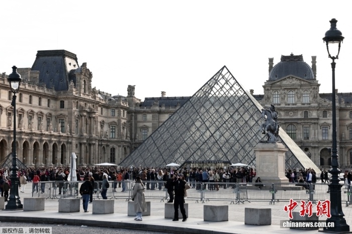 當?shù)貢r間10月22日,在經歷了搶劫事件三天后,法國盧浮宮重新開門,供游客參觀。圖為游客在盧浮宮外排隊。