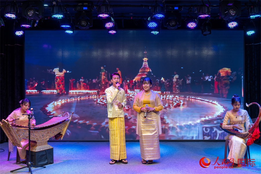 緬甸藝術(shù)家在活動(dòng)現(xiàn)場(chǎng)演唱傳統(tǒng)歌曲。人民網(wǎng)記者 謝佳君攝