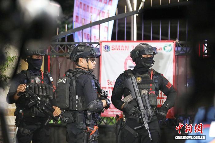記者當(dāng)晚在現(xiàn)場(chǎng)了解到,法醫(yī)團(tuán)隊(duì)已進(jìn)入校園收集證據(jù)。防爆人員與消防隊(duì)員現(xiàn)場(chǎng)待命,隸屬于拆彈技術(shù)小組的車輛仍??吭趯W(xué)校附近。其中,印尼國(guó)家反恐特警隊(duì)“88反恐分隊(duì)”人員也介入調(diào)查。