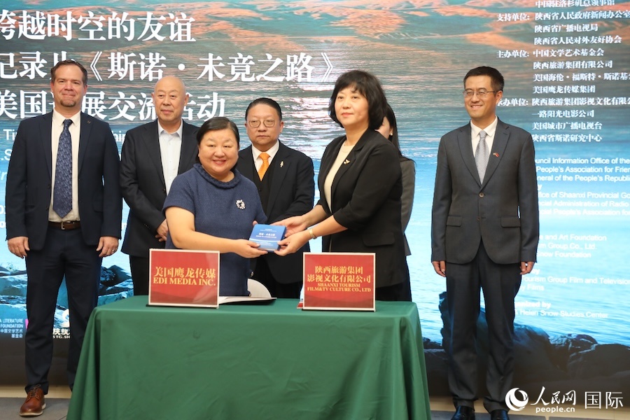 中美兩家公司簽署了《斯諾·未竟之路》北美發(fā)行協(xié)議。 人民網(wǎng)記者 李志偉攝