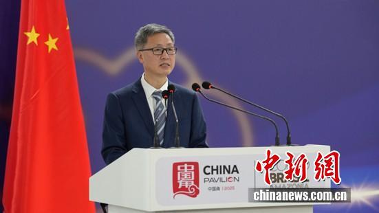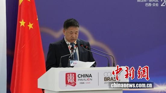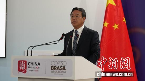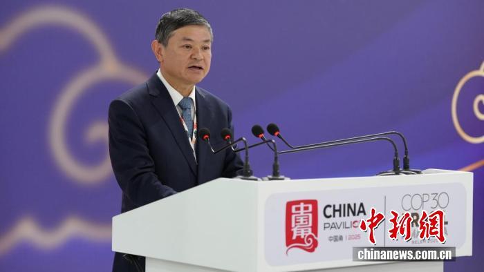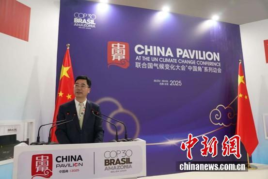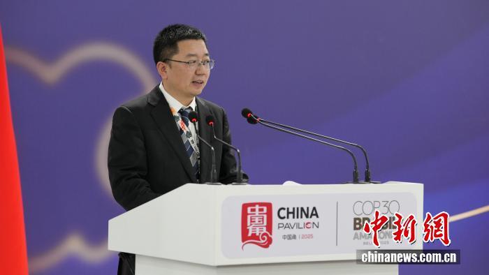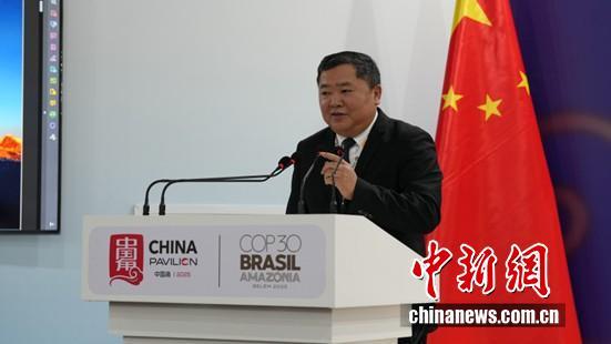 圖為COP30中國代表團團長 生態(tài)環(huán)境部副部長李高主持邊會致辭環(huán)節(jié)。中國新聞網記者 林勐男 攝