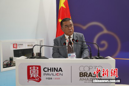 圖為中國氣候變化事務特使劉振民發(fā)表致辭。中國新聞網記者 林勐男 攝