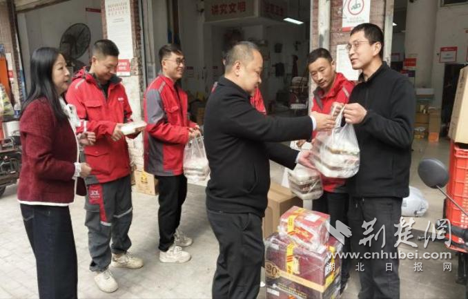 為讓快遞員在高強度工作中感受到關懷,近日,江漢區(qū)唐家墩街道香江新村社區(qū)黨委聯合湖北省中西醫(yī)結合醫(yī)院職工食堂,于“雙十一”期間將“小哥食堂”的溫暖送至京東、德邦等快遞網點,為一線快遞員送上熱騰騰的午餐,用實際行動表達敬意與支持。