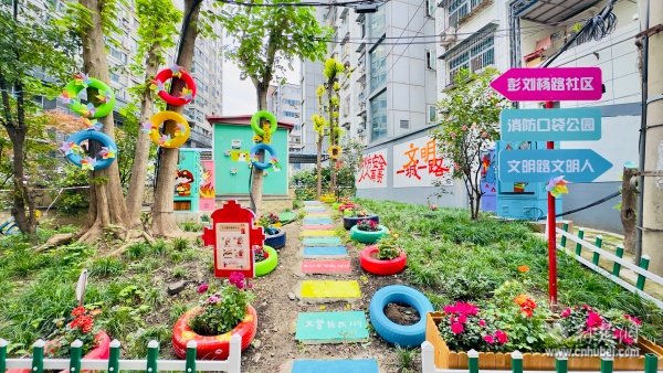 改造過程中,各方力量協(xié)同發(fā)力。物業(yè)負責(zé)大型樹木修剪,志愿者團隊深入綠地清理雜草垃圾,累計清運廢棄物數(shù)十袋;施工人員開展土地平整,精心栽種月季、杜鵑、迷迭香等適應(yīng)性強的觀賞植物,搭配彩繪輪胎裝飾,使綠化覆蓋率達到80%以上。最引人注目的是,花園創(chuàng)新融入消防主題元素——消防栓造型景觀、滅火器樣式指示牌等設(shè)施點綴其間,讓居民在休閑漫步中自然接受安全教育。