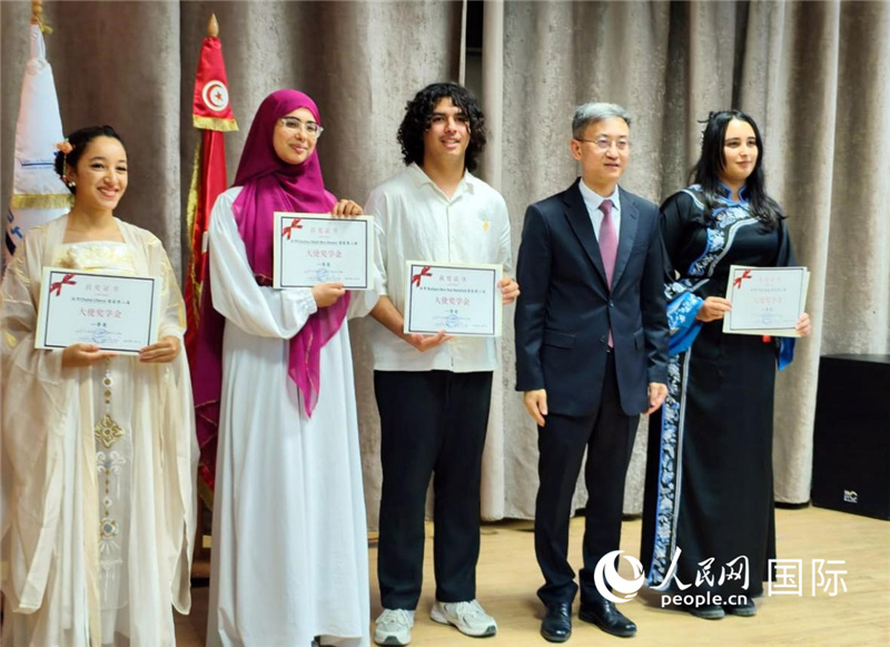 中國駐突尼斯大使萬黎在致辭中宣介中共二十屆四中全會精神,強調中國愿與世界各國深化文明交流互鑒,廣泛開展國際人文交流合作,勉勵突尼斯學生繼續(xù)努力學習中文,更好地讀懂中國人的精神世界、了解中華民族的奮進歷史、解讀中國式現(xiàn)代化的成功密碼,做中突文明互鑒的使者。