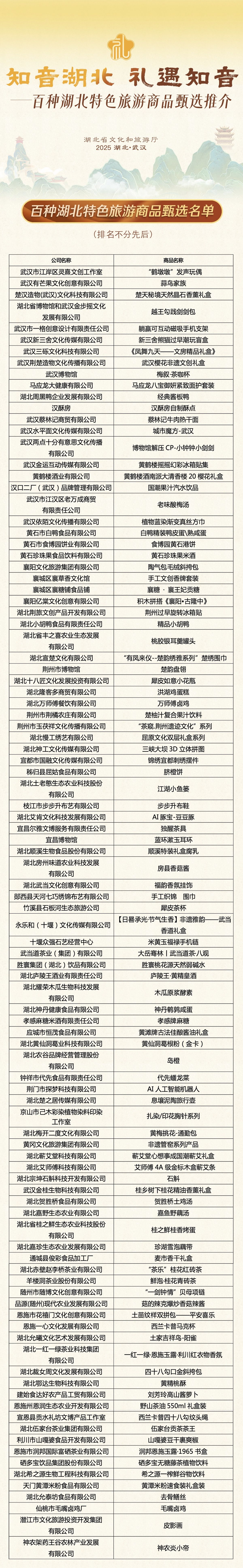 從非遺手作的千年文脈到智能產(chǎn)品的科技光芒,從生態(tài)好物的自然饋贈(zèng)到潮流單品的創(chuàng)意表達(dá),100件荊楚好物如同100封寄往世界的請(qǐng)柬,讓湖北的山水之美、人文之盛通過(guò)一個(gè)個(gè)精巧物件,走進(jìn)千家萬(wàn)戶的日常生活,讓更多湖北好物走向全國(guó)、走向世界,為湖北建設(shè)世界知名旅游目的地注入源源不斷的新質(zhì)動(dòng)能!