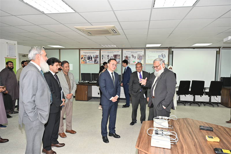 中巴兩國官員在巴基斯坦工程與應(yīng)用技術(shù)大學(xué)參觀。樊思源攝