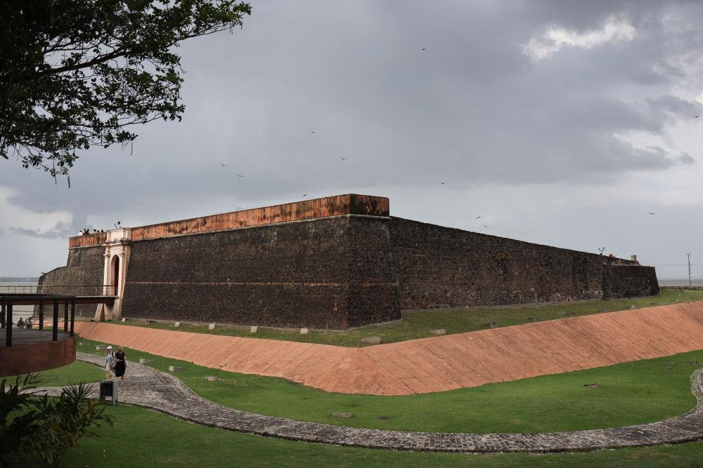 11月16日,在巴西北部城市貝倫,人們參觀一處臨河的古堡遺址。新華社發(fā)(克勞迪婭·馬爾提尼攝)