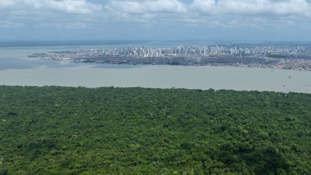 這是11月16日在巴西北部城市貝倫拍攝的熱帶雨林和河道(無人機(jī)照片)。新華社記者 王天聰 攝