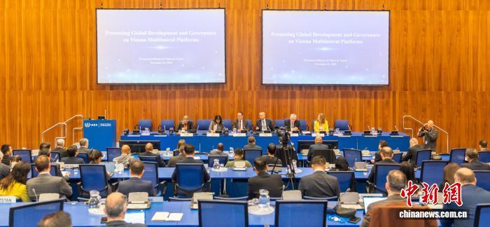 當(dāng)?shù)貢r間11月19日,中國常駐維也納代表團(tuán)在維也納聯(lián)合國總部舉辦全球發(fā)展倡議和全球治理倡議主題研討會。圖為會議現(xiàn)場。(中國常駐維也納代表團(tuán)供圖)