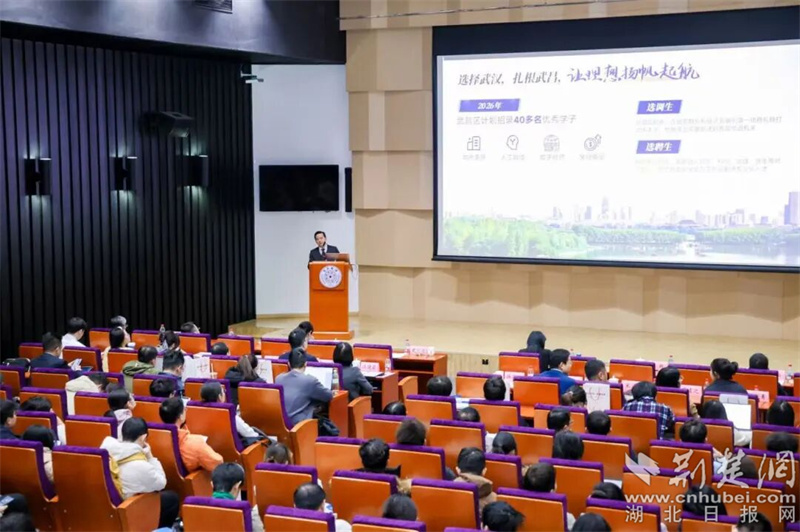 在用人單位推介環(huán)節(jié),武昌區(qū)委常委、組織部部長(zhǎng)施國(guó)宏以《三生有幸 筑夢(mèng)江城》為題,從“歷史底蘊(yùn)”“現(xiàn)代產(chǎn)業(yè)”和“生態(tài)宜居”等維度,介紹了武昌作為武漢重要城區(qū)的獨(dú)特魅力——從黃鶴樓的千年文化到長(zhǎng)江沿岸的現(xiàn)代樓宇經(jīng)濟(jì),從東湖綠道的生態(tài)長(zhǎng)廊到“環(huán)沙湖經(jīng)濟(jì)帶”的創(chuàng)新活力,一個(gè)開(kāi)放包容、充滿(mǎn)機(jī)遇的武昌形象吸引了在場(chǎng)眾多學(xué)子。