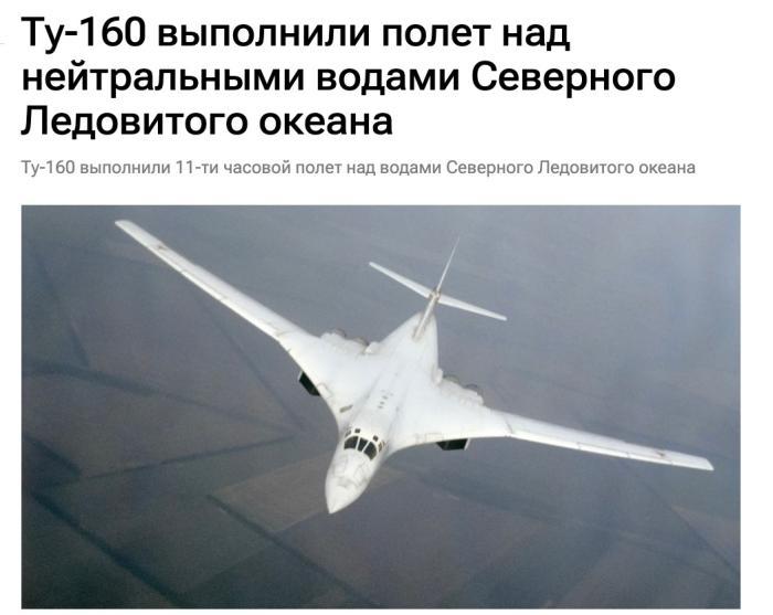 聲明稱, “圖-160遠程戰(zhàn)略轟炸機在北冰洋中立水域上空執(zhí)行了一次例行飛行。飛行時間超過11小時。”