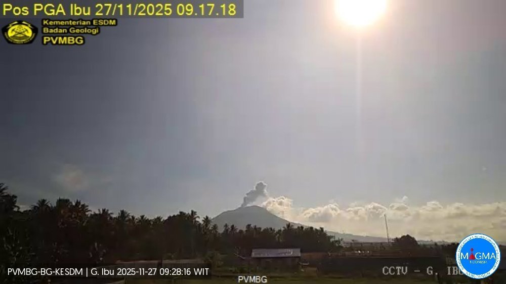 據(jù)印度尼西亞火山和地質(zhì)減災(zāi)中心消息,當(dāng)?shù)貢r(shí)間11月27日9時(shí)17分,印尼北馬魯古省伊布火山噴發(fā)。火山灰柱高約800米,噴發(fā)持續(xù)時(shí)間為57秒。(總臺(tái)記者 李琳)