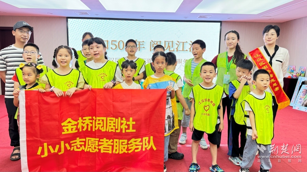 科技浪潮下,閱讀形式迭代升級(jí),江漢區(qū)圖書(shū)館以未成年人為抓手,探索“閱讀+創(chuàng)造+表演”的多元模式,首創(chuàng)“金橋閱劇社”,緊扣傳承老漢口歷史脈絡(luò),深挖歷史背后的故事,讓文字躍然舞臺(tái),讓閱讀更為鮮活,原創(chuàng)的兒童情景劇《時(shí)光流轉(zhuǎn) 漢口500年》、《茶馬奇遇記》連續(xù)兩年斬獲市級(jí)獎(jiǎng)項(xiàng),同時(shí)通過(guò)適齡閱讀活動(dòng)搭建親子共建橋梁,吸引閱劇社的小小成員、小讀者加入志愿者隊(duì)伍,隨我們走進(jìn)街道、社區(qū)和醫(yī)院,在服務(wù)中播撒捎帶愛(ài)心的志愿種子,實(shí)現(xiàn)“一個(gè)孩子帶動(dòng)一個(gè)家庭,一個(gè)家庭影響整個(gè)社會(huì)”的文明傳遞,為“美育江漢”注入文化動(dòng)能。