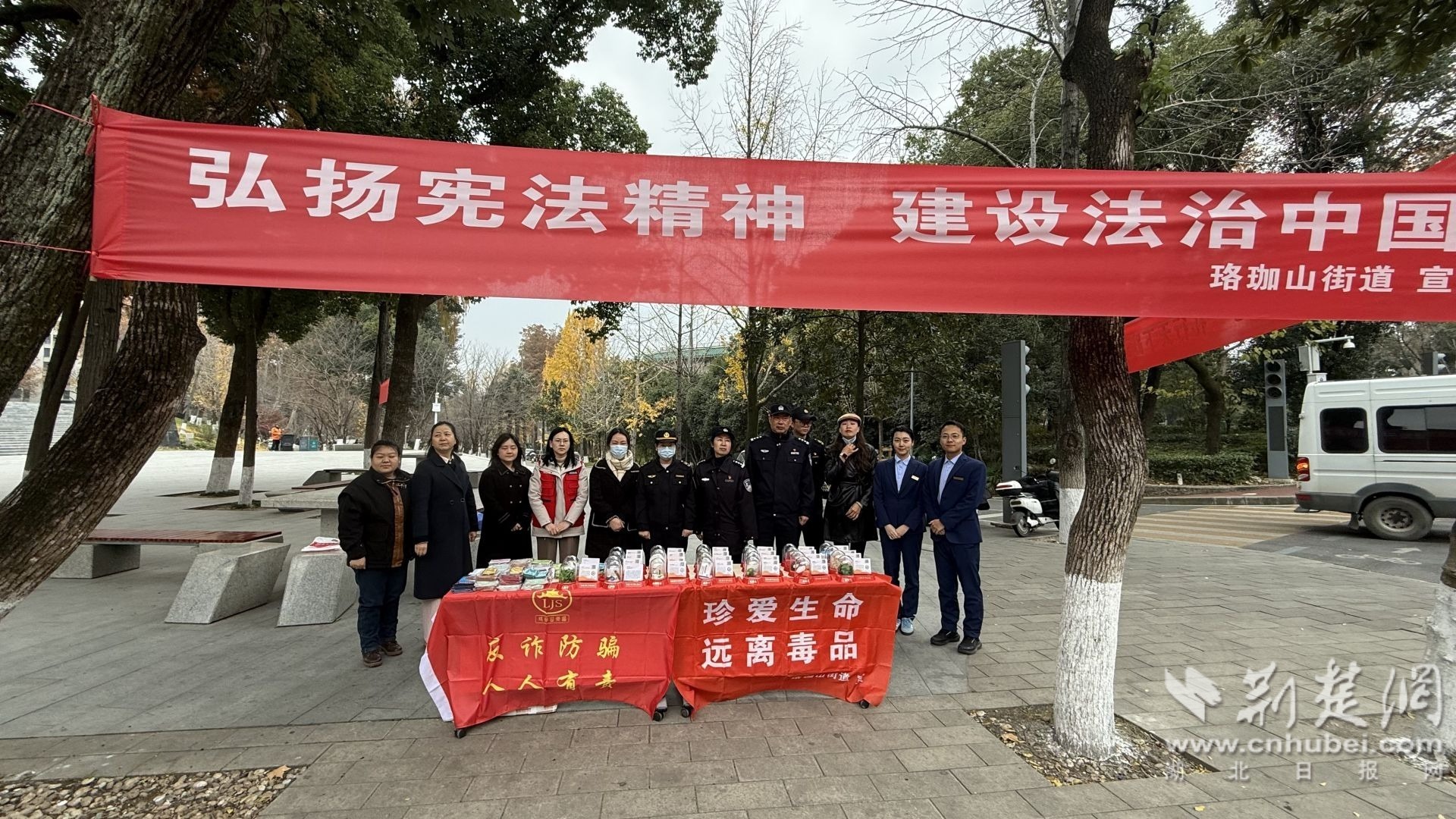 荊楚網(wǎng)(湖北日報網(wǎng))訊(通訊員 方茜)12月4日,武昌區(qū)珞珈山街道聯(lián)合武漢大學(xué)保衛(wèi)部、轄區(qū)派出所、司法所、執(zhí)法隊(duì)等多部門,在武漢大學(xué)萬林藝術(shù)博物館門前舉辦“憲法宣傳周”暨國家憲法日集中宣傳活動。本次活動以“憲法守護(hù)健康權(quán),禁毒筑牢生命線”為主題,旨在弘揚(yáng)憲法精神,增強(qiáng)全民法治觀念,同時深化禁毒宣傳教育,筑牢校園與社會禁毒防線。