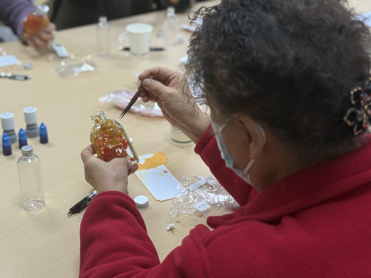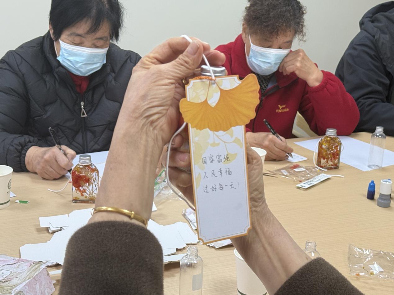 活動(dòng)注重多維感官體驗(yàn)與情感表達(dá)?!肮庵敢杯h(huán)節(jié)中,經(jīng)典詩(shī)句“如果冬天來(lái)了,春天還會(huì)遠(yuǎn)嗎?”的深情朗誦,與畫(huà)面中由暗漸明的曙光影像交織,直觀地喚醒心中的樂(lè)觀與期待。備受喜愛(ài)的“希望許愿瓶”制作,則提供了一個(gè)將抽象情感具象化的藝術(shù)創(chuàng)作過(guò)程。居民們?cè)谳p柔音樂(lè)中書(shū)寫(xiě)微小而具體的愿望,與象征時(shí)間與美好的干花一同封存,不僅創(chuàng)造了獨(dú)特的紀(jì)念品,更完成了一次賦予期盼以形態(tài)和儀式感的積極心理行動(dòng)。