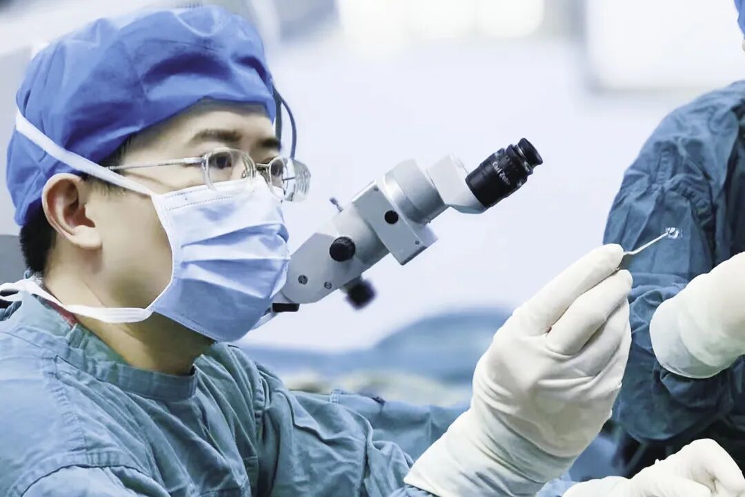 走進(jìn)眼科手術(shù)室,無影燈下的顯微手術(shù)臺宛如精密儀器車間。李銳主任正在為增殖性糖尿病視網(wǎng)膜病變患者實(shí)施微創(chuàng)玻璃體切除術(shù),厚度50微米的視網(wǎng)膜前膜、3微米的視網(wǎng)膜內(nèi)界膜,手術(shù)中可能需要?jiǎng)冸x,醫(yī)生就像是針尖上的舞者。“這種復(fù)雜的糖網(wǎng)手術(shù),三年前還需要轉(zhuǎn)診武漢,現(xiàn)在我們已經(jīng)獨(dú)立完成30例”器械護(hù)士輕聲介紹。
