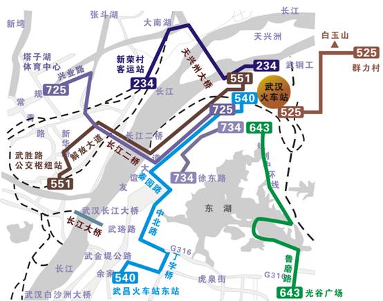 據(jù)悉,春運期間,將根據(jù)客流變化情況,調(diào)整增加武漢站上述7條公交線路運力,還將開通武漢站至漢口站的大站快車線路。走向為:武漢站經(jīng)白云路、團(tuán)結(jié)大道、建設(shè)十路、友誼大道、長江二橋、黃浦大街、發(fā)展大道、常青路至漢口站。
