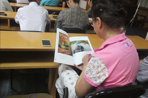 8月2日下午,在經(jīng)過半天休整之后,方老師開始為團(tuán)員們講課。“我們老年人應(yīng)該有自己的興趣和追求,要學(xué)會自己找樂!薄艾F(xiàn)在小孩都是老年人在帶,我們學(xué)會了攝影就可以教孩子,對他們將來也有好處。”方老師的一席話,頓時(shí)就讓許多團(tuán)員萌生了學(xué)攝影的想法。接著,他向團(tuán)員們展示了自己拍攝的眾多精彩照片,并拿出一本攝影圖集供大家傳閱!斑@本圖集里,都是我在老年大學(xué)教書時(shí),學(xué)員們拍的照片。最大的學(xué)員都80多歲了,但是照片拍的特別好。相信大家通過學(xué)習(xí),也可以拍的如此精彩。”方老師的話,給了在座的老人極大的信心,大家也學(xué)的更加認(rèn)真。